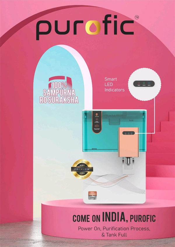 PUROFIC WHITE WITH GREEN TRANSPARENT TANK RO UV TDS WATER PURIFIER